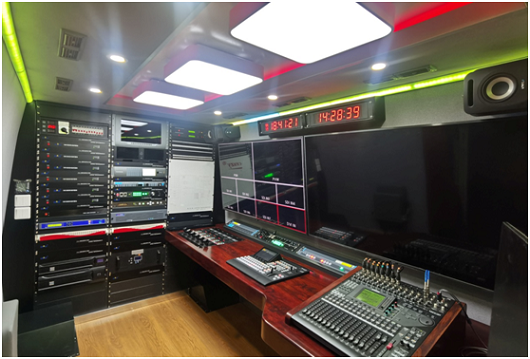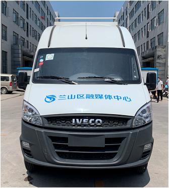 此车辆采用依维柯底盘,车长6.99米。车内采用L型布局,内饰空间布局方便合理。改装后车内高度可达1.8米,车内采用4工位式设计,支持6路光纤讯道摄像机和2路无线图传摄像机同时摄录。设置的有拓展空间。