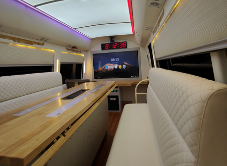 “动中通”卫星通信指挥车采用考斯特底盘,车内包括“动中通”卫星通信系统、视频处理系统、网络办公系统、4G\5G聚合路由通信系统、天通多链路对讲系统、广播音响系统和集中控制系统,采用超静音柴油发电机、UPS不间断电源系统和外接两相三相电相结合的供电方式,具有在灾害事故现场进行通信组网、指挥通信、情报信息支持等功能。